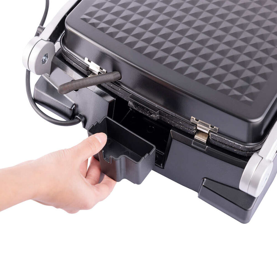Izgara modunda pişirme sırasında akan yağları toplayan yağ haznesi, mutfakta hijyen sağlar ve temizliği daha pratik hale getirir.