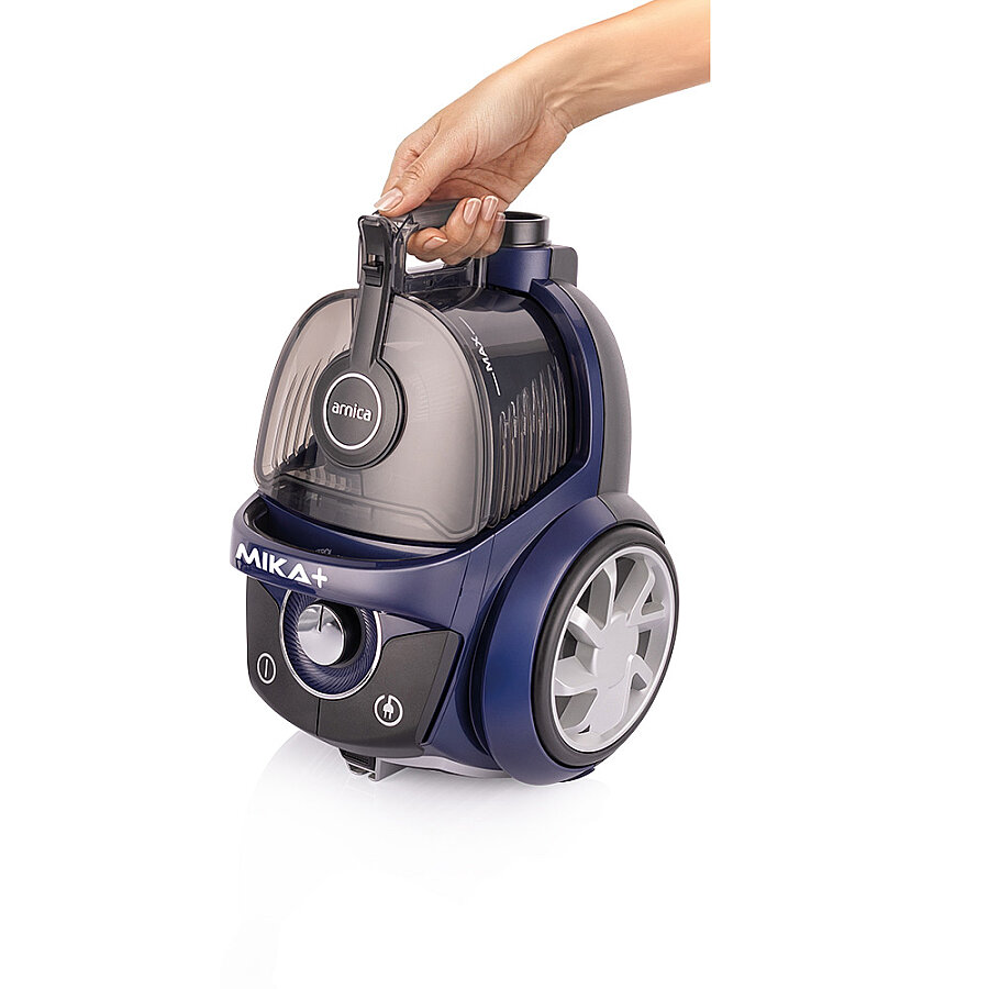 Arnica Mika Plus Torbasız Elektrikli Süpürge, şık lacivert rengi ve kompakt yapısıyla evinizin vazgeçilmezi olmaya aday.