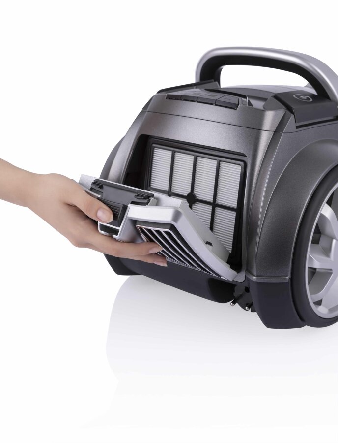 Arnica Orion Premium, 750 W motor gücüyle yüksek emiş performansı sunarken gelişmiş kontrol özellikleriyle temizlikte konforu yeniden tanımlıyor. Koldan kumanda fonksiyonu sayesinde süpürgeyi eğilmeden, kolayca yönetebilir; güç ayarını, açma-kapama işlevini tek bir dokunuşla kontrol edebilirsiniz.